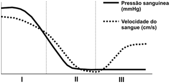 13.  (COVEST) Na curva abaixo, ilustra-se o comportamento da pressão sanguínea nos diferentes vasos do corpo humano. Analise o gráfico e as proposições a seguir.